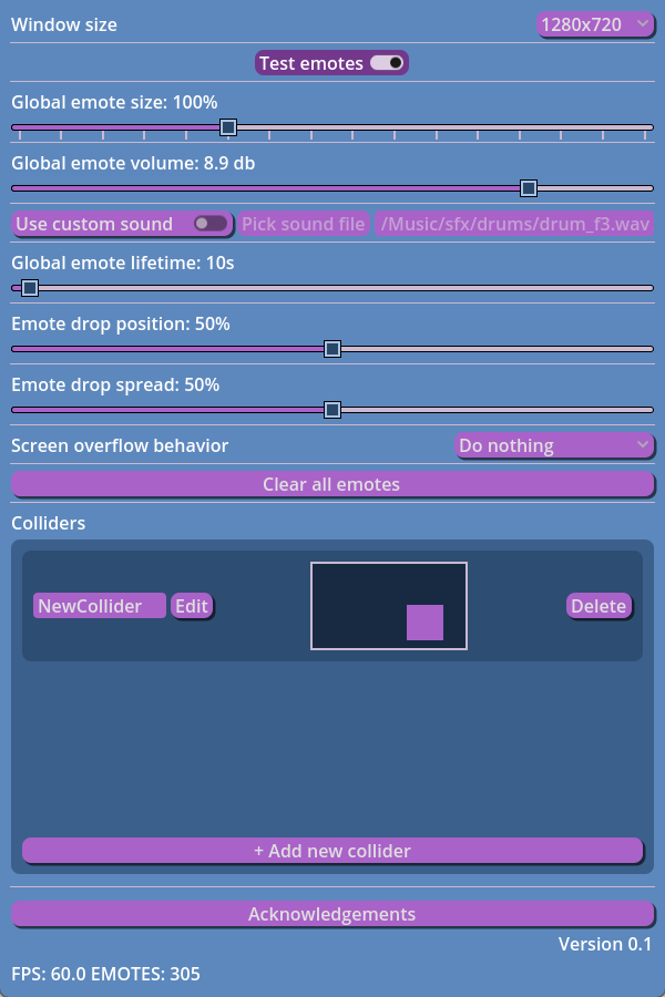 EmoteDrop is an overlay for Twitch streamers which bounces emotes around in your stream. Any emotes used in your chat will drop from the top of the screen.